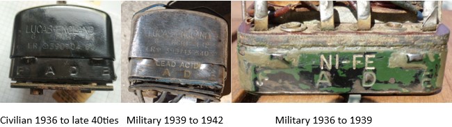 regulators Because of the different charging requirements there were also two types of MCR1 CVC regulators. It is believed that prior to the introduction of the lead acid batteries by the military, civilian regulators did not have a battery type marking and that Ni-Fe type regulators were marked "NI-FE" on the front bottom of the regulator above the F A D E markings.